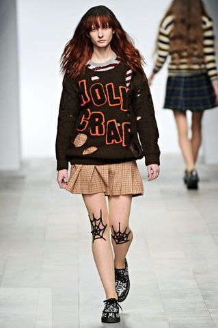 Ashish AW11 show that I styled during london fashion week, probably my favourite ever collection of his, with the best moth eaten knitwear i've ever seen, the coolest sequin tartan punk trousers with knee and ankle zippers, skellington tracksuit bottoms...the most beautiful striped shirts inspired by m&s boxer shorts...holy knitted crop tops.....sequins that looked like wool blankets and herringbone that looked like mink fur....